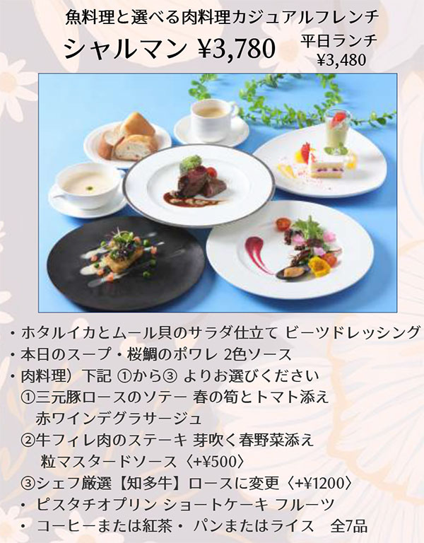 - 7:00~10:00(最終入店 L.O. 9:30)バイキング形式